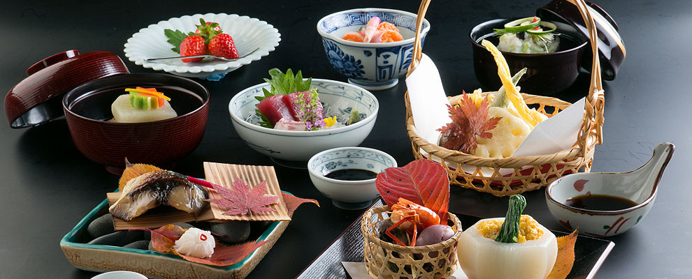 季節の魚介、京野菜に京生麩、生湯葉などを使った四季折々の会席料理をご堪能ください。
